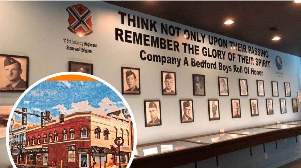 The Bedford Boys Tribute Center, located in the former Green’s Drugstore, pays homage to the 38 young men from Bedford County who were among the first to land upon the shores of Normandy on D-Day. Of these 38 soldiers, 19 did not return.