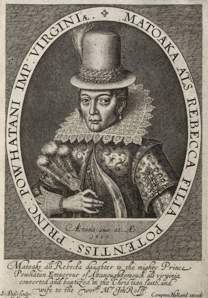Engraving by Simon van de Passe, 1616. This is the only known representation made of Pocahontas during her lifetime.